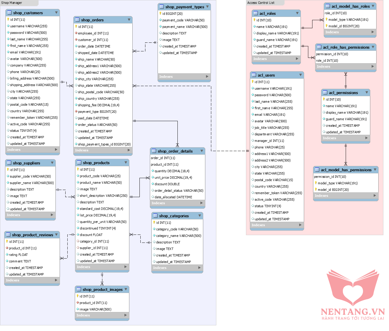 Mô hình Cơ sở dữ liệu (database) NetaShop