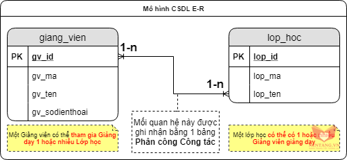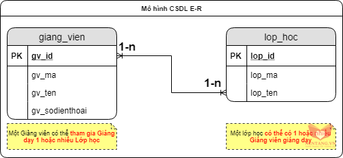 Ta có Quan hệ thực tế giữa Giảng viên và Lớp học như sau: