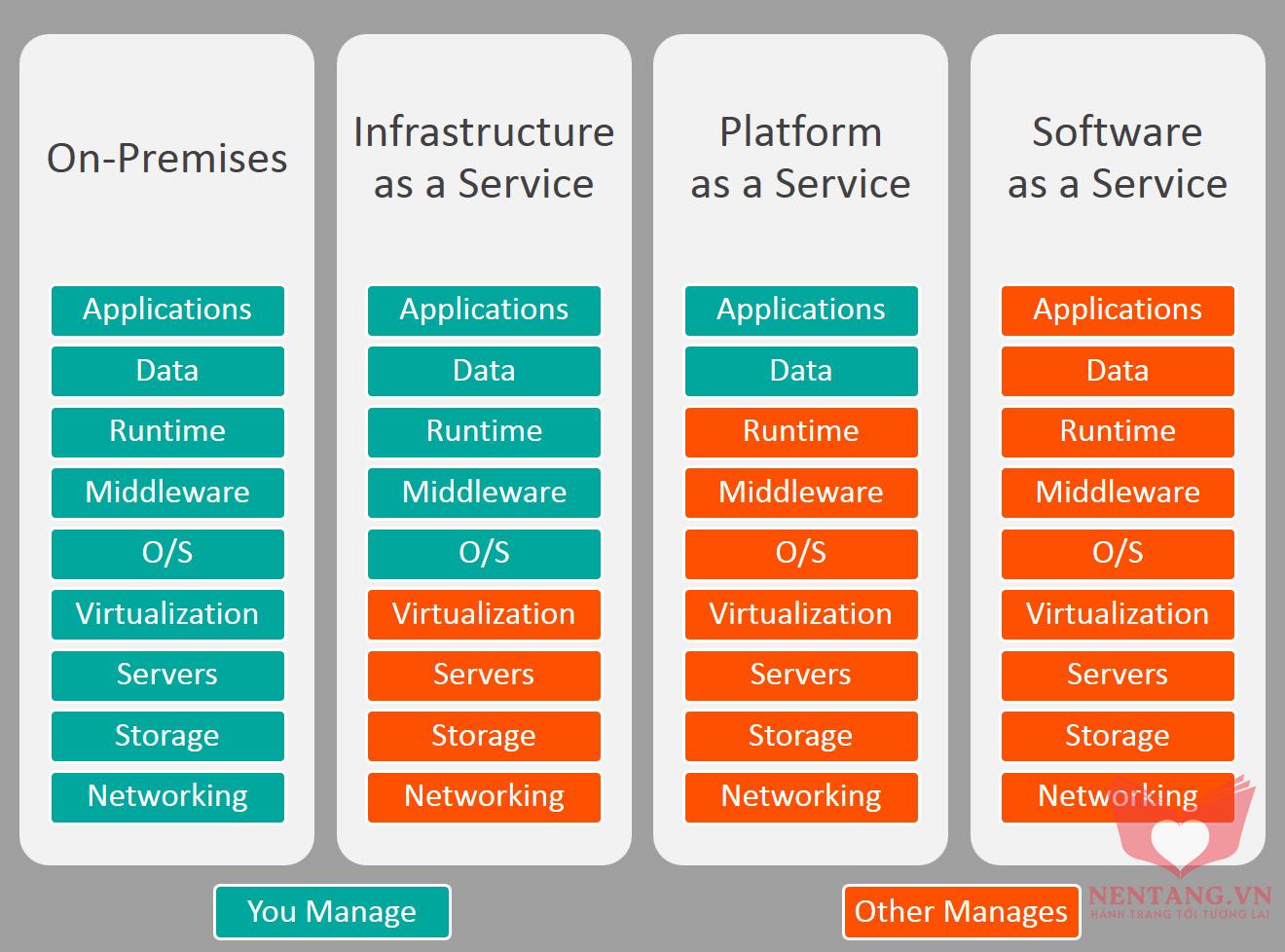 Ở Việt Nam, đa phần các công ty lớn dùng dạng On-Premise, tự xây dựng hệ thống hạ tầng vì họ có tiền để nuôi team IT. Ở nước ngoài, các công ty startup, công ty vừa và nhỏ thường dùng IaaS hoặc PaaS do Google, Amazon, Azure cung cấp để