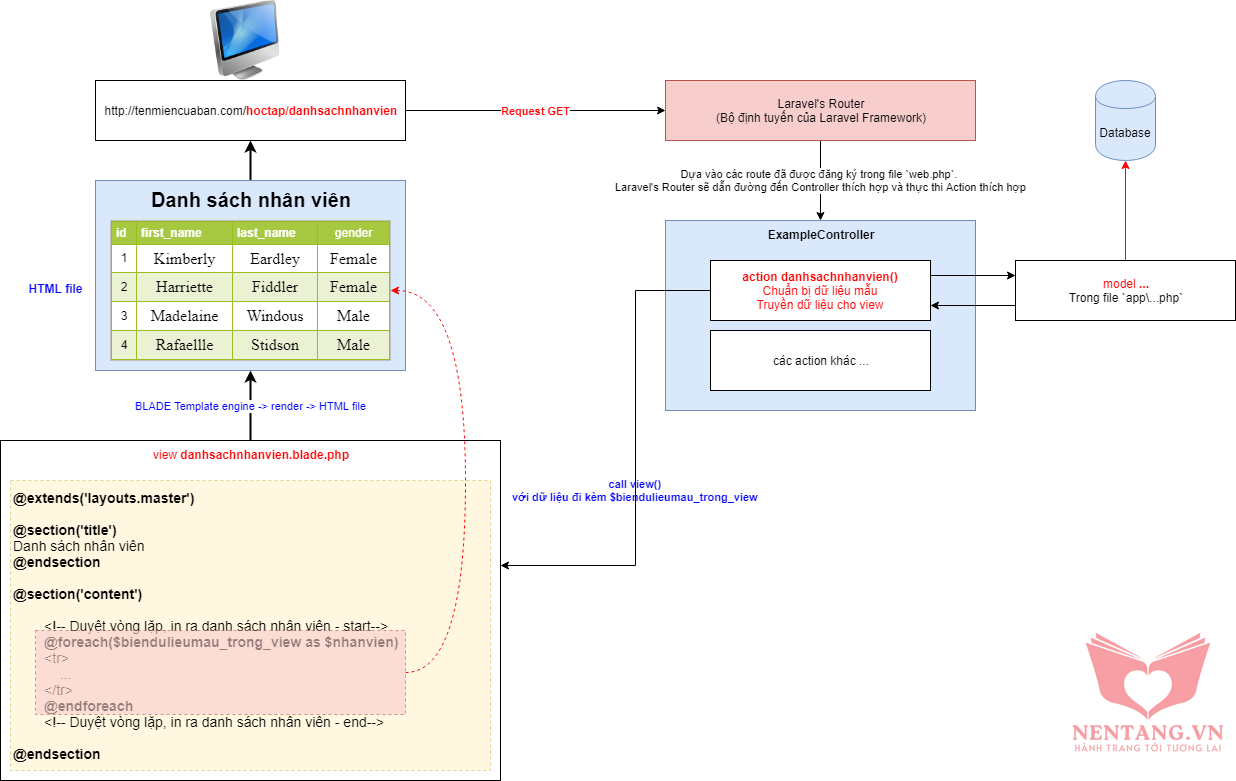 Mô hình hoạt động của /hoctap/danhsachnhanvien: