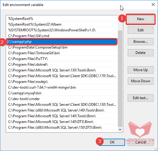 composer vào thư mục dự án của bạn (sử dụng command-line)Start -> Run -> sysdm.cplPath, mặc định khi cài XAMPP là c:\xampp\php