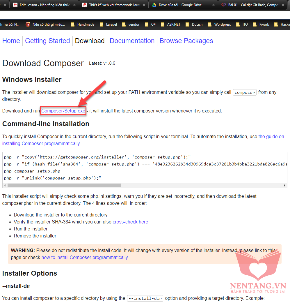 composer vào dự án của bạnphp -r "copy('https://getcomposer.org/installer', 'composer-setup.php');"