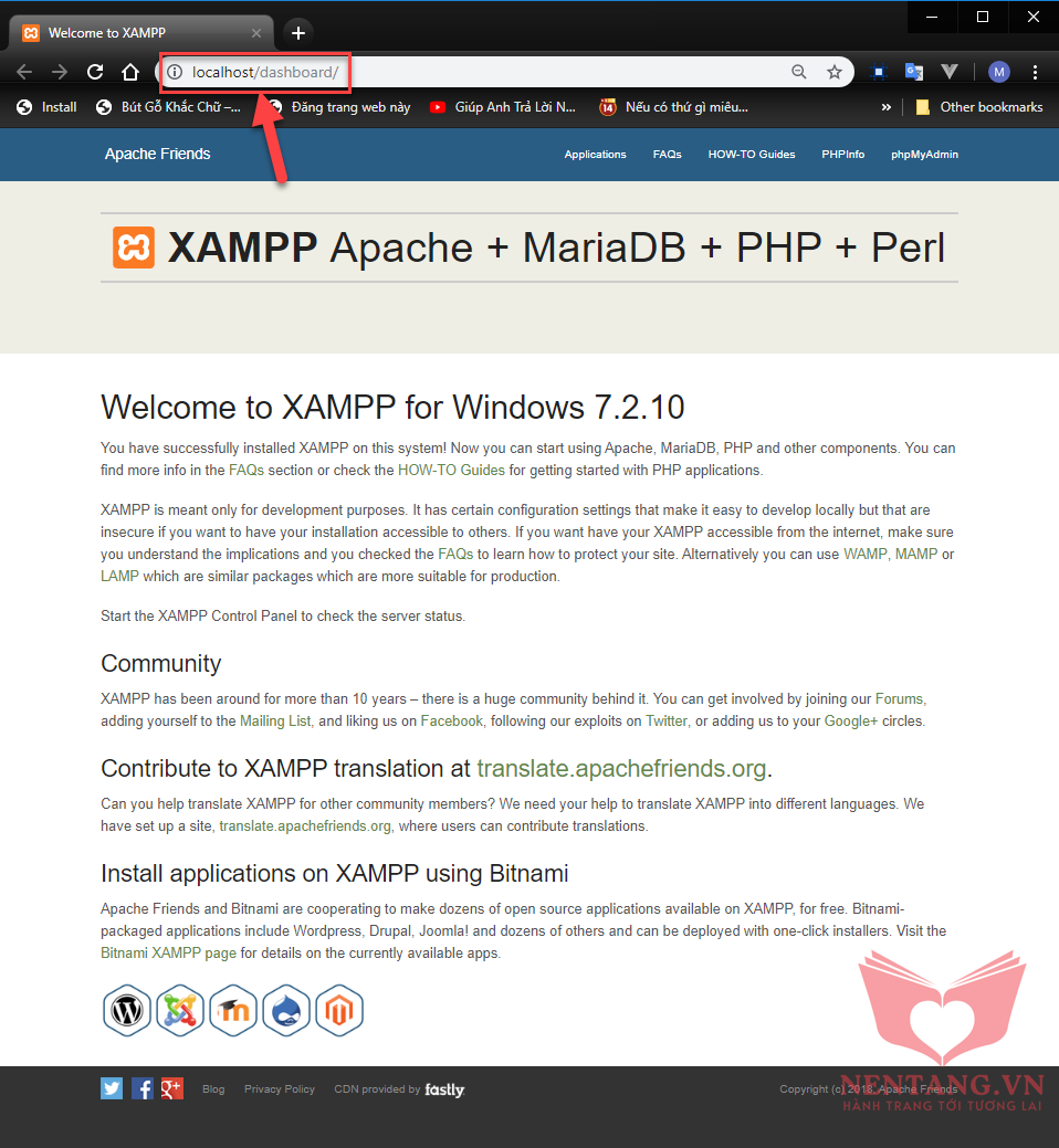 Web browser với địa chỉ: http://localhost/dashboard