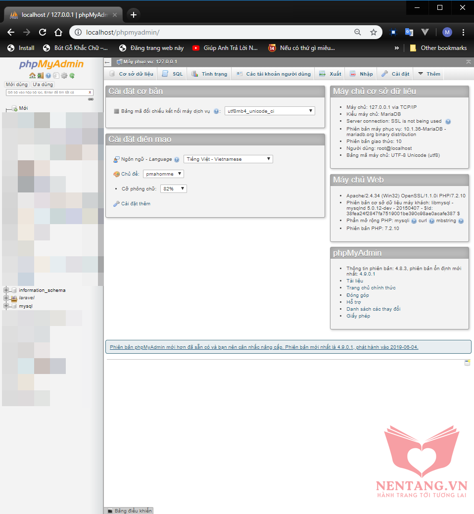 Web browser với địa chỉ: http://localhost/phpmyadmin/