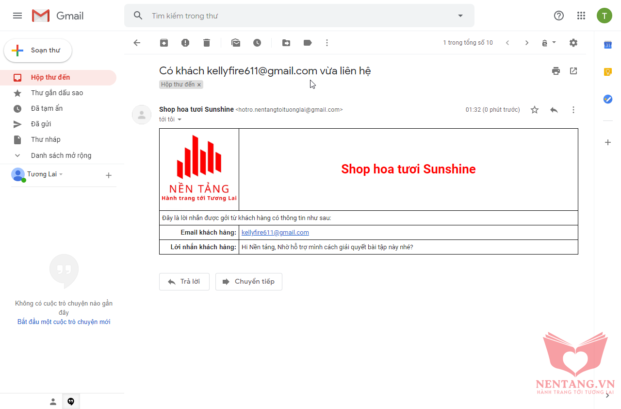 [email protected] hoặc email cá nhận của bạn kiểm tra xem có nhận được mail từ khách hàng không? Nếu okey thì sẽ nhận được mail như sau: