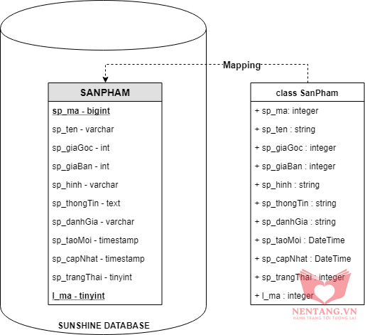 Source code tham khảo MODEL ánh xạ table Sản phẩm: https://github.com/kellyfire611/sunshine/blob/master/app/SanPham.php