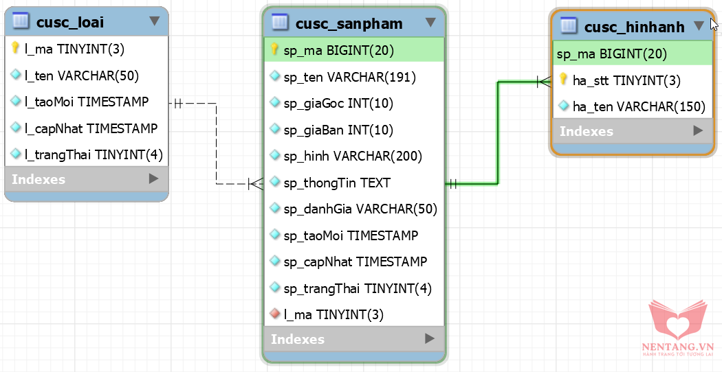 Xem xét mối quan hệ giữa table cusc_sanpham và cusc_hinhanh