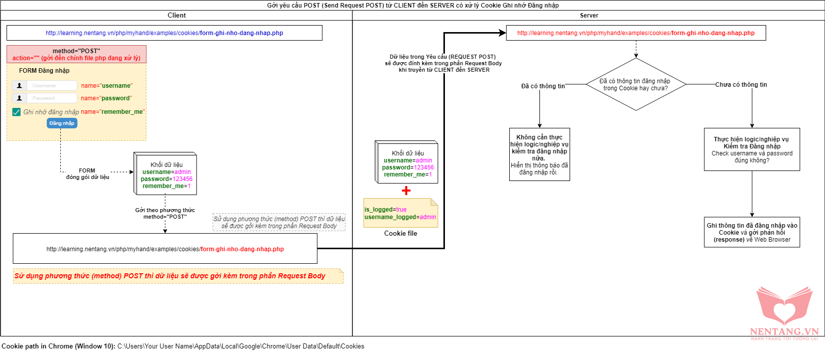 $_COOKIE['is_logged'] = true và $_COOKIE[' username_logged']='tennguoidung'/examples/cookies/form-ghi-nho-dang-nhap.php<!DOCTYPE html>