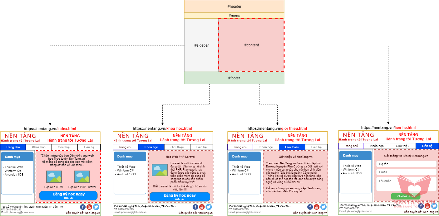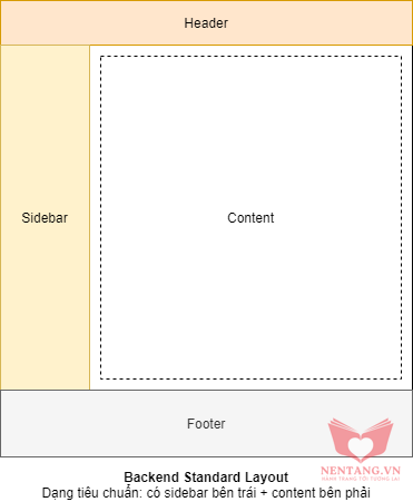 Content: đây là vùng nội dung chính của trang, thường sẽ thay đổi tùy theo chức năng.
