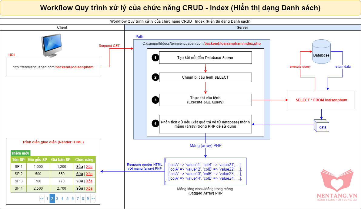 Step 3: Tạo nội dung trang và xử lý Truy vấn Database bằng PHP