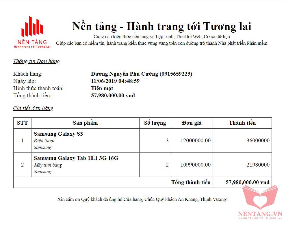 // Câu lệnh SQL Query lấy thông tin Đơn hàng