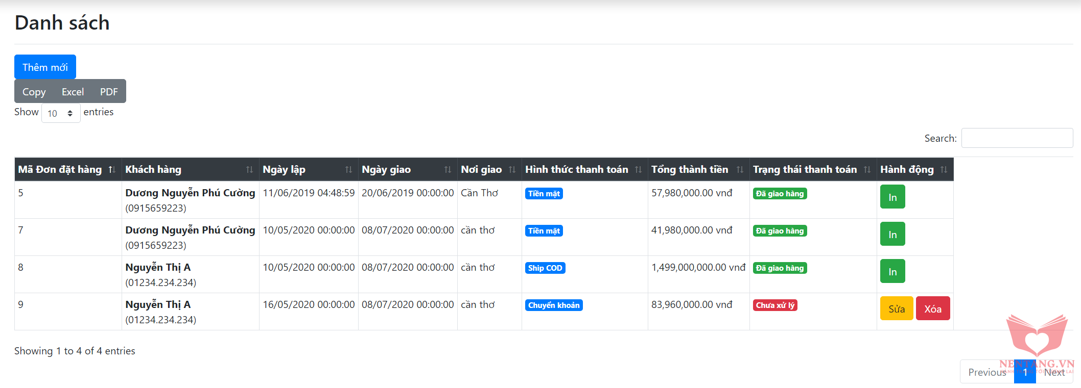 <!-- Đơn hàng nào đã thanh toán rồi thì không cho phép Xóa, Sửa (không hiển thị 2 nút này ra giao diện)