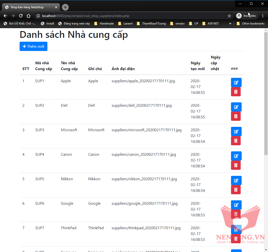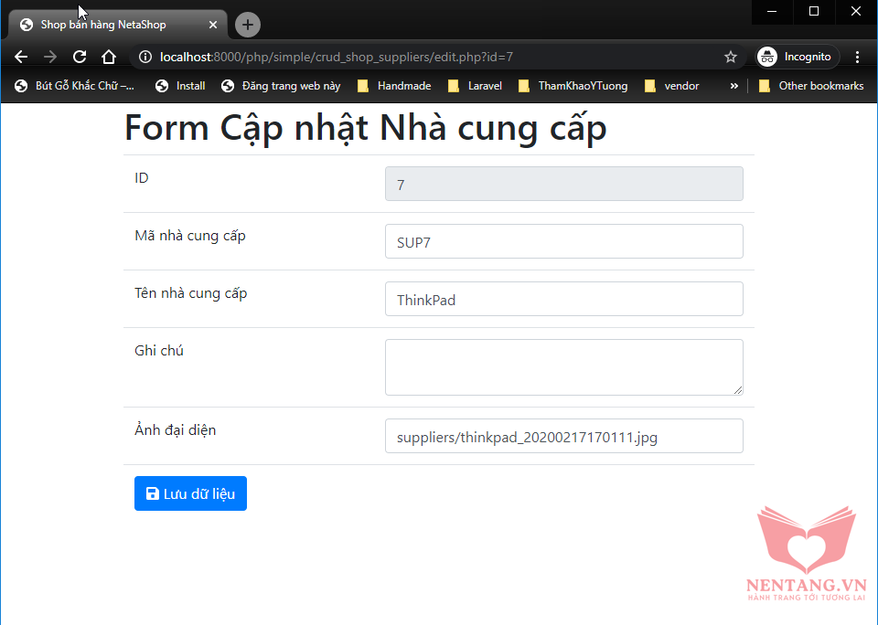 Step 7: tạo chức năng Cập nhật Nhà cung cấpcrud_shop_suppliers, tạo tiếp file edit.php<!DOCTYPE html>