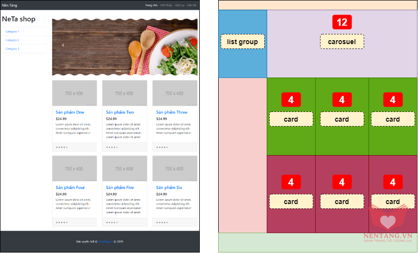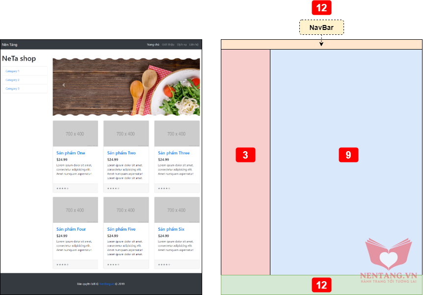Thiết kế Bố cục Layout cho Trang web NetaShop như hình sau: