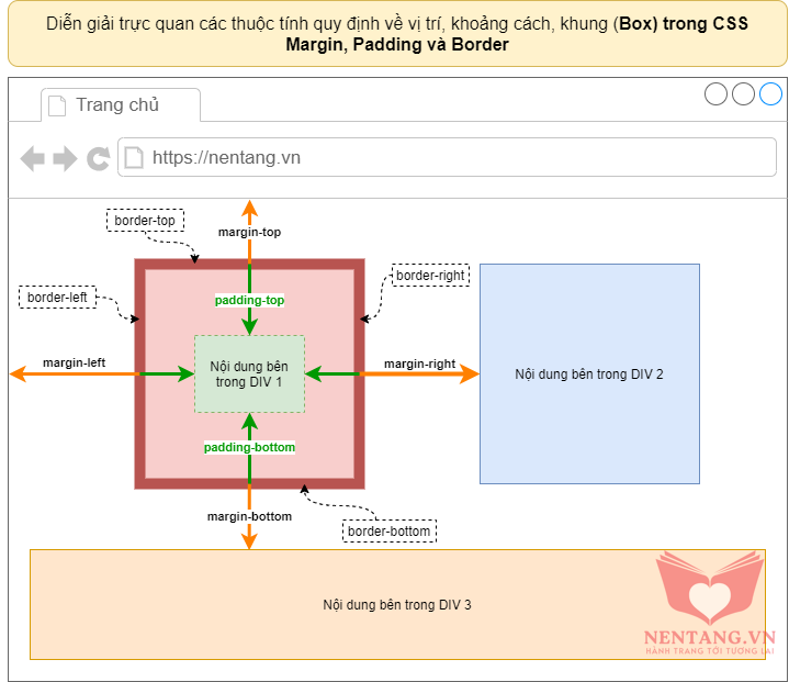 Diễn giải trực quan các thuộc tính quy định về vị trí, khoảng cách, khung (Box) trong CSS