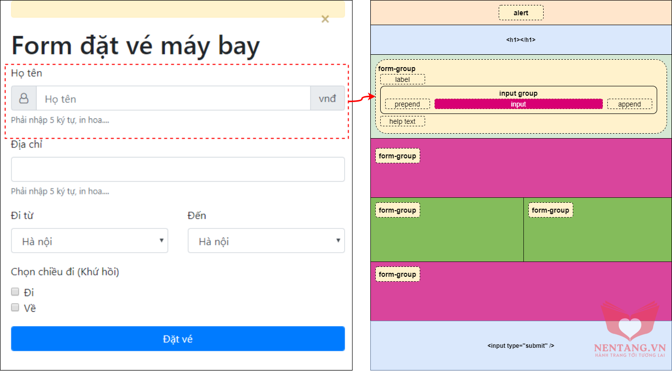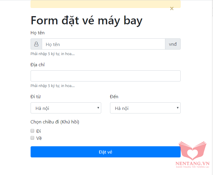 <h1>Form đặt vé máy bay</h1>