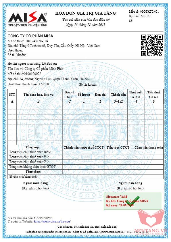 // TODO: Khai báo các Biến dữ liệu cần thiết để có thể lưu trữ được Mẫu hóa đơn bán hàng