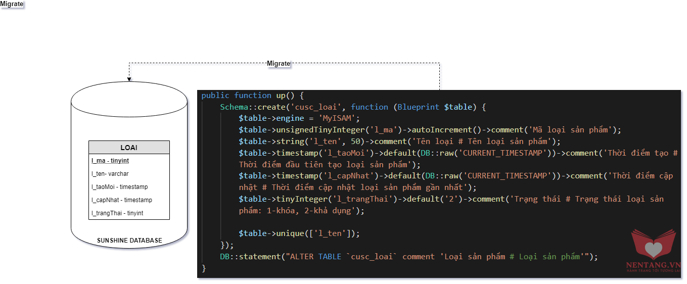 artisan để tạo MIGRATION trong LaravelLoạiphp artisan make:migration create_cusc_loai_table --create=cusc_loai
