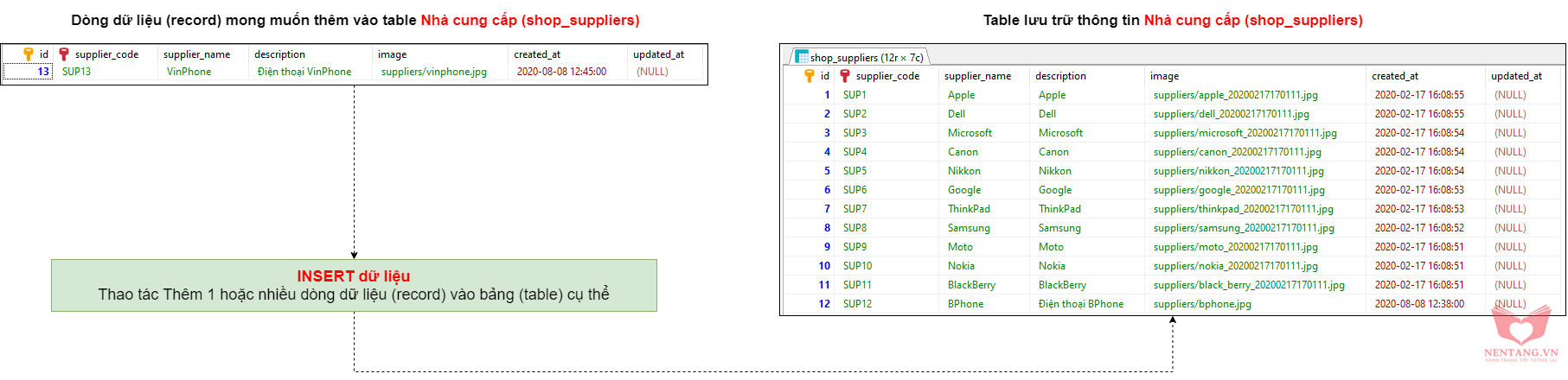 shop_suppliers theo cách Tường minh (chỉ định số cột cần INSERT cụ thể)shop_suppliers: